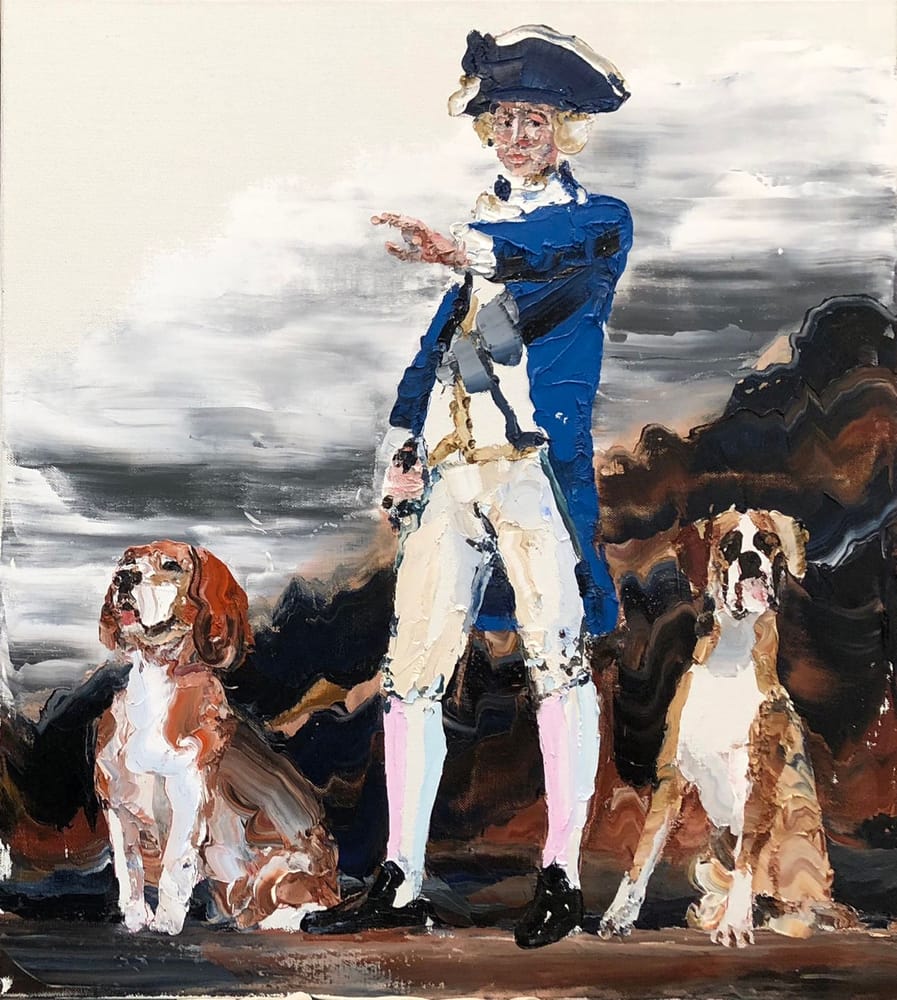 Cook and Hounds II was first shown at Edwina Corlette Gallery in his 2018 exhibition ‘The Colonies, South by Southeast’